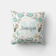 Een kussen met een schattige tekenstijl voor fruitpatroonlijnen. Lichtgroene en gele kleuren. Een leuk summiere design. Een witte cirkel die over bovenkant met jouw naam en monogram initiaal binnenin gelaagd wordt.