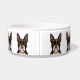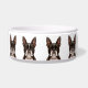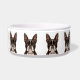 Een vun thema als huishond: Boston Terrier-hondenvoer of waterkom ontworpen met Boston Terrier-honden overal rond de kom.