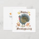 Thanksgiving wenskaart met de woorden "Happy Thanksgiving" en kleurrijke kalkoen. Voeg je eigen bericht aan de achterkant toe.