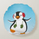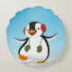 Een schattige winterillustratie: een pinguïn met handschoenen en oorflap in een goede stemming loopt in de sneeuw.