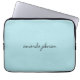 Cute Girly Modern Blue Monogram Cursive Full Name Laptop Sleeve