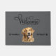 Deze Golden Retriever hondendeurmat is het perfecte cadeau voor elk hondenliefhebber. Dit ontwerp is compleet met de woorden "Welkom bij ons thuis", een plek om jouw naam en de naam van uw hond toe te voegen, en een schattige Golden Retriever waterverf-afbeelding. Geniet ervan!