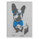 Cute grappige, , driedubbele Franse bulldog met heldere blauwe polka stik en bril. zwart, grijs afbeelding puppy dog, , antiek oud grijs papier met nood, pauw, blauwgroen, grijs, zwart, schattig, leuk, helder, lacht, fashioneerbaar. Hond, huisdier, puppy, hondenras, dier, hondenliefhebber. Pas het met jouw naam favoriete woord of uitdrukking aan door de aanpassingsknoop te klikken en tekst toe te voegen, de tekstdoopvont en de kleur te kiezen. Afbeelding afdrukken