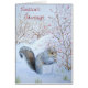 Deze schattige wintersneeuwscène op deze briefkaart show een schattige kleine grijze eekhoorn die zit tussen de sneeuwbedekte struiken en grassen. Hij heeft een struik gevonden die bedekt is met rode winterbessen en geniet van een vleugje op zijn gelukkige vondst. Deze leuke pekelsneeuwscooterkaart is erg evocatief voor de koude wintermaanden op het Engelse platteland, maar de nuchterheid ervan kan ook het hele jaar door worden gewaardeerd. Het afbeelding van deze hongerige kleine grijze eekhoorn maakt een originele kerstkaart en ik weet zeker dat dit schattige afbeelding een glimlach zal brengen naar vrienden en familie of naar wie je deze kaart stuurt. Er zit een kort open vers in de kaart. Het afbeelding op deze originele briefkaart is een geproduceerd uit mijn oorspronkelijke waterverf getiteld "A Winter Feast".