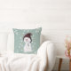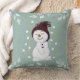 Deze schattige kerstkussen bevatten een verlegen sneeuwpop die van de sneeuw houdt.