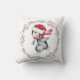 Een schattig kleine pinguïn schaats over deze leuke kerstkussen die gemakkelijk op de rug gepersonaliseerd kunnen worden, en die een geweldig cadeau doet voor een dochter, kleindochter of neice. De pinguïn draagt een rode, witte, gestreept wintersjaal en een kersthoed. Rond het afbeelding is een rode bessen en een holle bladspier. De rug van de kussen heeft de zelfde breedte met de tekst in rood "MERRY CHRISTMAS", plus drie extra tekstgebieden voor u om aan te passen.