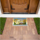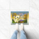 Doormat met een cartoon kat op een kleurrijke landschapsachtergrond met uw eigen (grappige of andere) teksten. U kunt een verschillende achtergrondkleur kiezen als u wilt, voor het ontwerpen rond het landschap. Dit ontwerp is ook mooi voor een thuis waar kinderen wonen ;-)