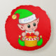 Cute Kerstmis baby elf op rode achtergrond ronde kussen. Geloof dat tekst gepersonaliseerd kan worden.