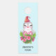 Deurhanger met een schattig en grillig design met een schattige pinguïn met een rode kerstmuts. Staand achter een boeket bloemen met roze en wit gestreepte snoepjes.