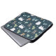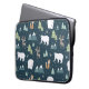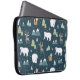 Laptophoes met een festief patroon. Polaire beren, herbouten, bomen, vossen en sneeuwvlokken. Op een donkergroene achtergrond.