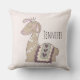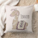 Een kussen met een tekening van een schattige lama met een kroon en een Peruaanse deken. Ziet er fancy en elegant uit.