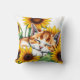 An adorable ai watercolor illustration of a little white and orange kitten taking a nap in a bunch of sunflowers. Add this sweet, cozy décor into your space to induce a relaxing environment.