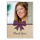 Sweet en charmante Cute Bow-Afstuderen Dank u voor een witte pokstip met paarse boeg- en faux-papiertextuur. Ideaal voor het bedanken van vrienden en familie voor cadeaus en/of het bijwonen van je afstudeerfeest. Eenvoudig aan te passen, voeg eenvoudig een foto en uw gepersonaliseerde tekst op de verstrekte tekstgebieden toe.