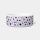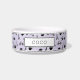 Pamper je zoete pooch met onze gepatterde kom van Parijs, met de Eiffeltoren, fietsen, rozen, makrelen, croissants en koffiebekers in het zwart op een pastellavender paarse achtergrond. Pas de naam van uw huisdier aan in zwarte letters.