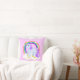Een schattig roze kussen voor de meisjes met een schattige blauwe eenhoorn onder een sterrenregenboog. Pas de achtergrond aan om het even welke kleur aan u houdt van.
