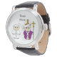 Voeg naam, datum, persoonlijk bericht aan dit horloge toe dat een afbeelding van de cartoon van de Paus en van de Prijs kenmerkt. Modern ontwerp, geweldig priesterend geschenk voor ordinatie, herdenking en uniek. Andere design zijn hier te vinden: www.zazzle.com/trending2016/priest* Cute grappige priest and Pope cartoon for a Priest with a good sense of humor.