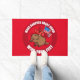 A funny cartoon red cardinal & groundhog on a doormat. Use "Personalize this template" to tweak the "MAKE CARPETS GREAT AGAIN WIPE YOUR FEET" text and create a unique, customized gift. Featuring a proud red cardinal bird carrying the stars and stripes. A tongue-in-cheek play on a ubiquitous phrase of our times. The bird sits astride his stoic groundhog steed, on a five-pointed star background. Inspired by the wildlife visiting my friends' Washington DC back yard.