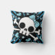 Cute skull en crossbones met boog omgeven door harten en sterren in blauwe tinten.