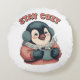 Cute Stay Cozy Penguin Drinking Hot Cocoa Hat Rond Kussen