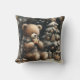 Geniet van dit schattige werpkussen voor jezelf of om cadeau te geven. Dit "Schattigee teddybeer-kerstontwerp" ligt in de buurt van een kleine, versierde, besneeuwde kerstboom met een gouden ster en kerstballen. Hij draagt een geplakte sjaal en in de donkere zwarte afstand zie je sneeuwvlokken vallen.