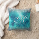 Cute turquoise Silfaux glitter monogram Kussen