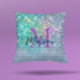 Cute Turquoise unicorn faux glitter monogram Kussen