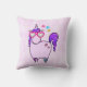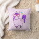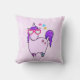Een kussen met een grillige tekening van een stoere en funky roze eenhoorn met een paarse manen en sprookje. Dit schattige wezen draagt een hartvormige zonnebril en is versierd met kleine sterren. Roze waterverf achtergrond.