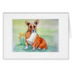Waterverf schilderij van een Welsh Corgi Dog met Daffodils op een groene achtergrond. De kaart van Groeten is leeg voor je eigen bericht.
