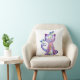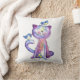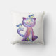 Dit is een origineel gemengd mediaschilderij van een grillige, gelukkige, paarse kat met twee vogels.