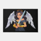 Cute woman Angel's with open wings and sword, Valkyrie, Illustration of a winged female angel figure with flowing hair and sword