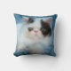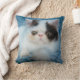 This cute Getty Images photo features a fluffy black and white kitten sitting on blue blanket.