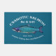 Een blauwtonde Sockeye zalm met tekst die "Cyanotic Salmon Bar & Grill Kenai, Alaska" en "Combat Vist rust en relaxatie. Vist zalm erg populair, te populair in Alaska. Stel je voor dat honderd hengelaars, ongeveer schouder aan schouder, beide oevers van een beekje proberen te vermijden dat ze met iedereen oversteken in de hoop een grote zalm aan te landen. Dat is gevechtsvisserij. Na een dag van die tijd neem je wat R&R in bij de mythische Cyanotische zalm in Kenia. Vist verhalen die daar gezegd zijn...wat waar .