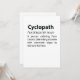 Veel plezier met dit grappige Cyclopath Funny Dictionary Definition ontwerp, of geef het als het perfecte cadeau aan je vrienden en familie van het fietsliefje. Pas uw eigen tekst of een uniek bericht aan om persoonlijke aanraking toe te voegen.