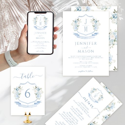 Embrassez le romantisme moderne avec cette élégante carte de détails mariage de style vintage français, magnifiquement conçue avec des fleurs bleues douces sur la crête vistorienne. Cette carte offre une touche personnalisée pour votre célébration mariage. Idéal pour les mariages classiques, de jardin ou de printemps/été, il peut être customisé avec votre monogramme sur le dos pour une couche supplémentaire de sophistication et de charme. Parfait pour créer une suite de papeterie cohésive et élégante.