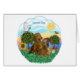 C'est une journée heureuse dans le pays avec un soleil souriant, de jolies fleurs, une colombe volant au-dessus de la tête et deux Dachshunds rouges ou bruns assis dans l'herbe verte émeraude douce comme soufflent les brises douces.