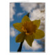 Mooie gele narcis tegen blauwe lucht met wat wolken.