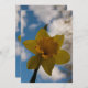 Mooie gele narcis tegen blauwe lucht met wat wolken.