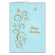 Een florale rol met gestileerde bloemen en delicate vlinders. Een geweldige verjaardagskaart. Bekijk het hele scala aan kaarten voor leeftijden en relaties in mijn winkel. Gulden vlinders gemaakt van een delicaat rolwerk vloeiend rond deze elegante en mooie verjaardagskaart.