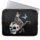 Dag van de dode kattensuikerschedel en vlinder laptop sleeve