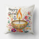 Diya of Devotion Sierkussen Een lichtgevende diya gloeit in een goudhouder, zijn vlam werpt sacrale warmte over een tapijt van handgeschilderde bloemen. Juwelen en ingewikkelde patronen glinsteren als zegeningen, terwijl gouden stippen door de lucht dansen als gefluisterde gebeden. Dit afbeelding roept de ziel van Diwali op – een feest van licht dat triomfeert over het duister, van schoonheid, dankbaarheid en het eeuwige ritme van wedergeboorte. Het begeleidende citaat, ("In de stilte van de schemering, een enkele vlam zingt van hoop herboren.") gedrukt op de keerzijde, verdiept de emotionele resonantie en biedt een poëtische reflectie om de geest van het festival vooruit te dragen.