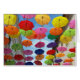 Een dak van kleurrijke paraplu's onder de heldere hemel