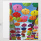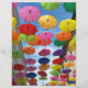 Een dak van kleurrijke paraplu's onder de heldere hemel