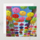 Een dak van kleurrijke paraplu's onder de heldere hemel