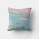 De pastel, dalmatische gevlekte print op dit Sierkussen is gemaakt van een originele foto van ZoeSPEAK van een aquablauwe zonnehemel gevuld met gezwollen roze wolken en een zwerm zwarte vogels. De vogels worden abstracte zwarte vormen verspreid over de zachte aqua en roze lucht.