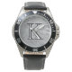 Unieke gepersonaliseerde monogrammed- en faux-stalen patroonhorloge. Het ontwerp heeft een groot monogram ontwerp. Op de achtergrond ziet u onze met de hand getekende Damascus-stalen achtergrond die subtiel op de achtergrond wordt weergegeven. Geweldig cadeau voor vaderdag, verjaardag, verjaardag en nog veel meer! Ontwerp en originele illustraties door de moedthologiepapier