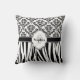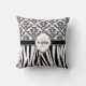 Klassiek en klassiek zwart-wit demaspatroon met zebra streep print. Het grafische ontwerp kenmerkt een retro stijlnaambord met monogram de letter en voornaam van het initiaal. Elegant trendy chic gift voor meisjes en vrouwen.