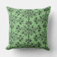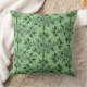 Een vierkant gooiend kussen met een elegant damppatroon van mazen en bladeren met zwarte rollen op groenvoer.