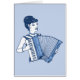 Une image rétro d'une dame bien habillée jouant d'un accordéon.