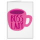 Dame de PATRON avec une tasse de café rose