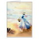 Dame in blauw op strand schilderen